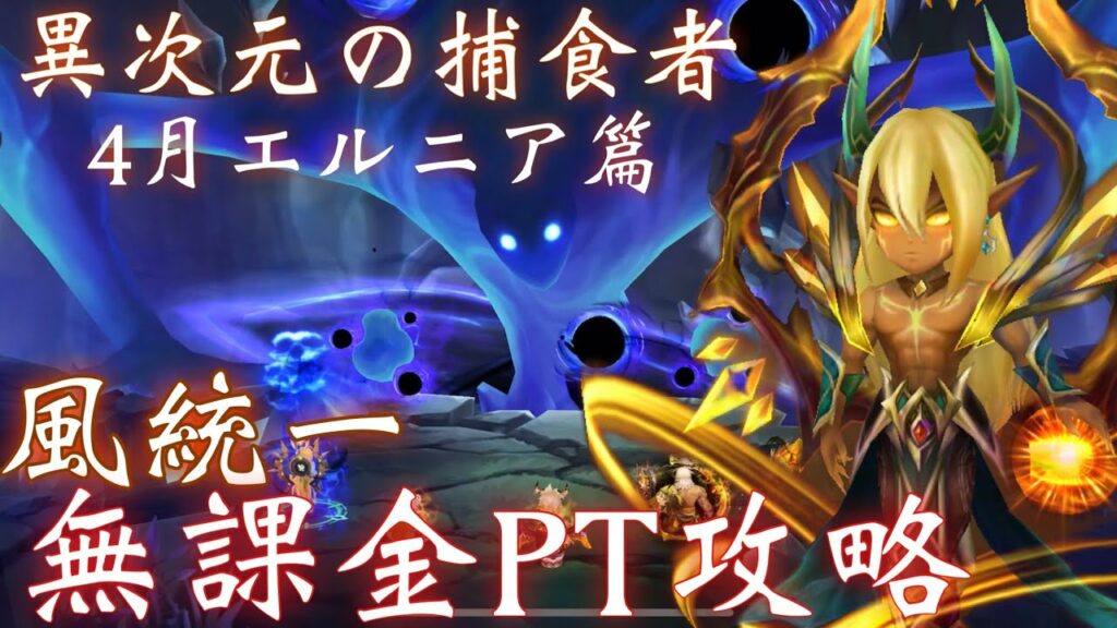 【異次元の捕食者】4月エルニア篇 「風」統一無課金PTで楽々攻略【サマナーズウォー】