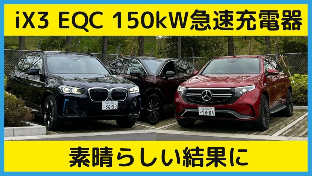 日産アリア、BMWiX3、メルセデスEQCの三台で150kW急速充電器で充電!アリアでの充電の様子は下記リンクからどうぞ。